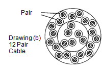 If you specify 12 Pair cable, first we take 2 cores and twist them to form a pair, 3 such pairs are again laid up, above that 9 such pairs are laid up to form a 12 pair cable and it look as drawing (b) below:
