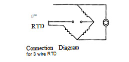 To take care of lead wire resistance and the change therein due to change in ambienttemperature,three wire RTD is used and the connection ofthe same in the bridge circuit is as under.